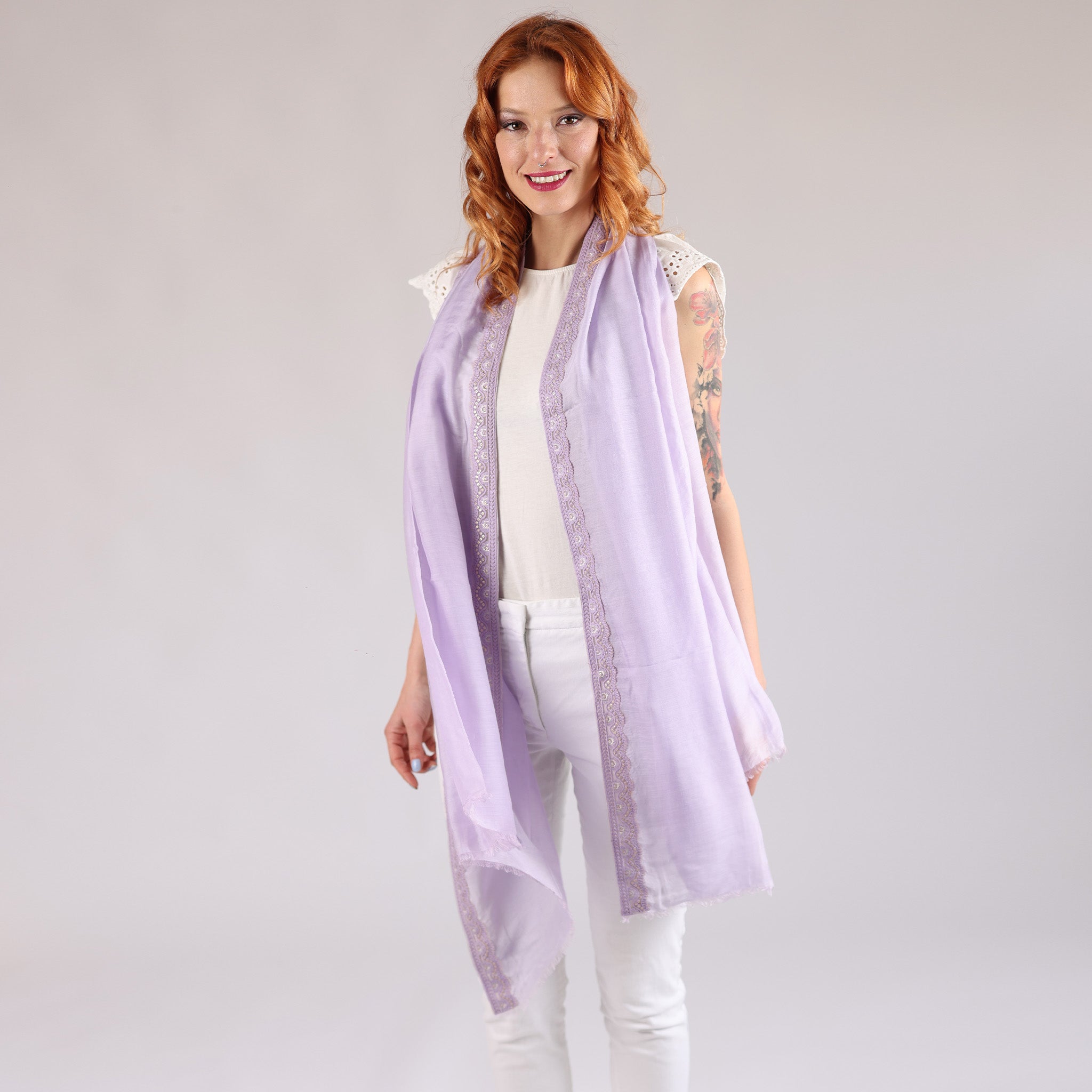 Chantilly - sciarpa unita con bande ricamate
